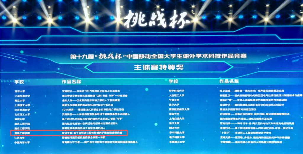 此次历史性突破,离不开学校系统化的科创支持体系。备赛期间,校领导多次关心指导项目进展,学院组建专项指导团队,围绕选题方向、技术路径与答辩呈现开展多轮精细化打磨。创新创业学院及校团委等部门协同联动,形成“校院协同、师生共创”的强大合力。“从最初的技术构想到数百次传感器调试,再到最终站上全国舞台,学校的持续支持给予我们迎难而上的底气。”团队成员刘定阳如是说。
