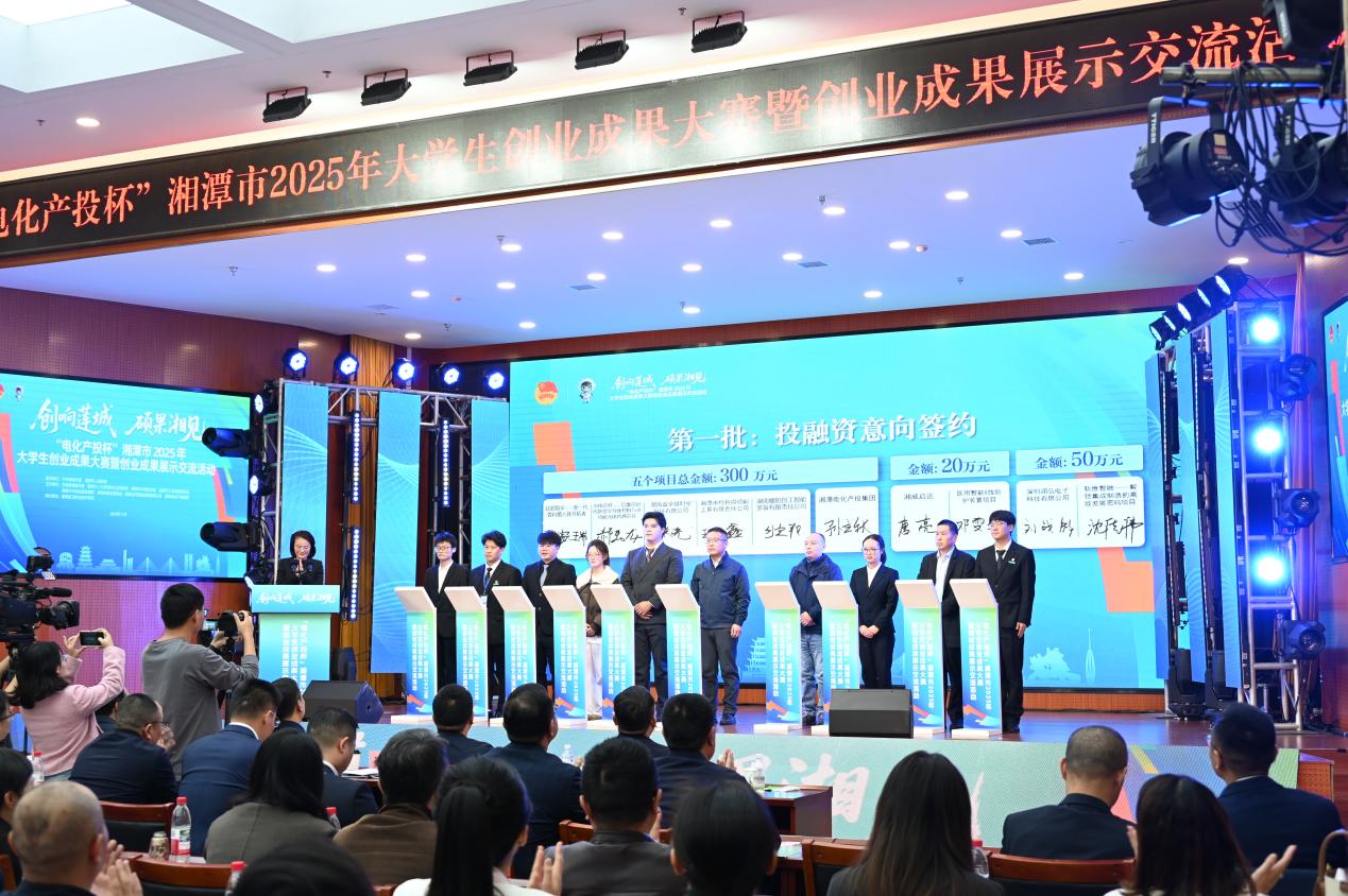 值得一提的是,大赛现场同步举行了投融资签约与项目入园仪式。两个创业团队已与湘潭电化产投集团达成初步合作意向,未来将积极推进项目落地,助力区域产业智能化升级。