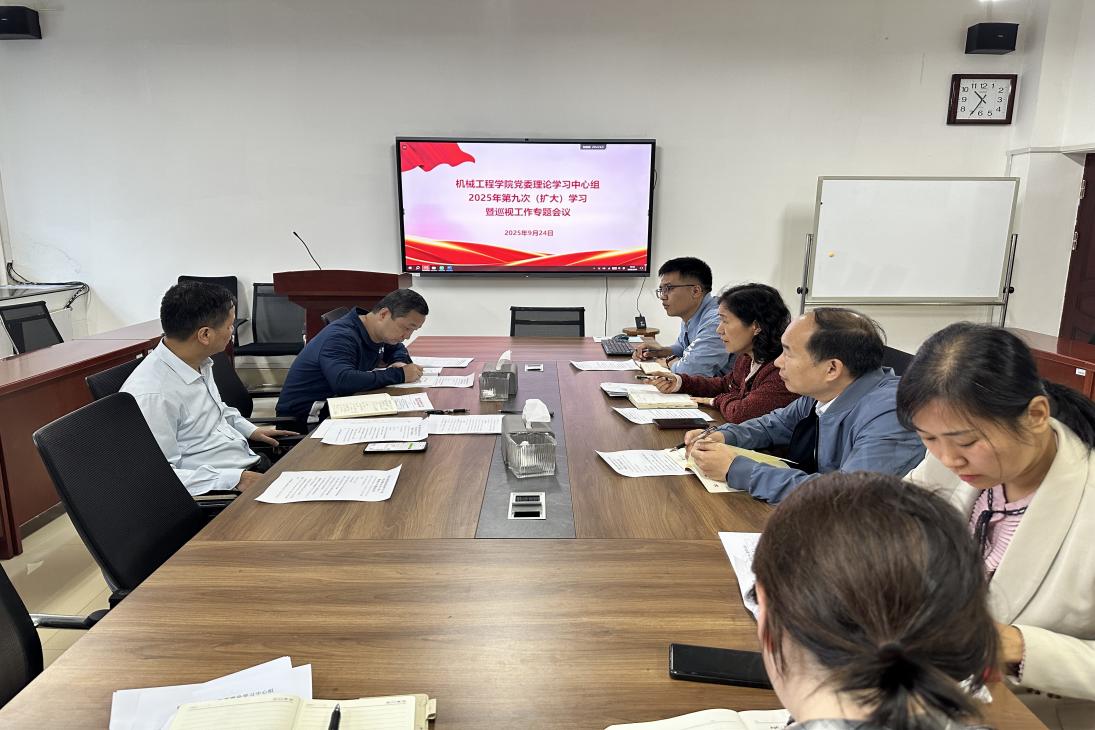 9月24日下午,学院党委理论学习中心组2025年第九次(扩大)学习会议在机械楼308会议室举行。学院党委书记黄先威主持学习,学院党委理论学习中心组成员、各党支部书记参加学习。